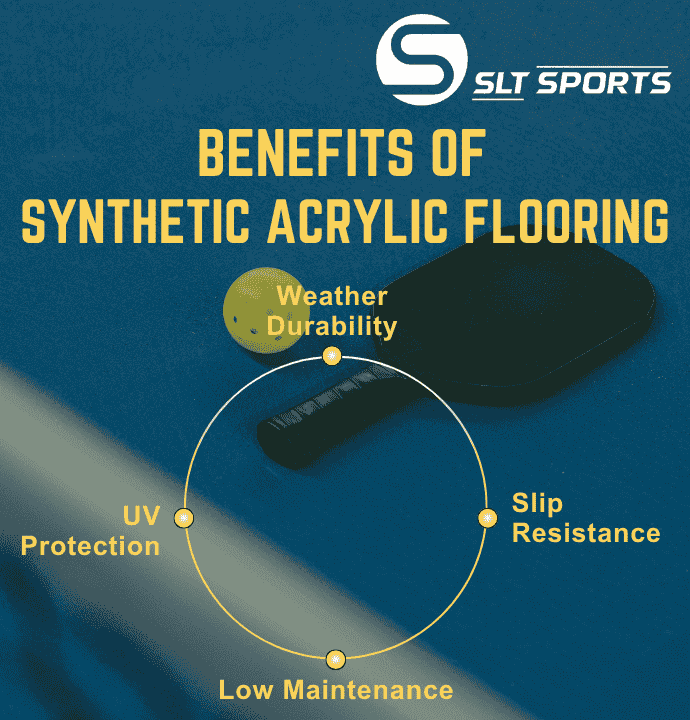 SLT Sports is one of the leading manufacturers of synthetic acrylic sports flooring systems in India. They provide top quality products like acrylic resurfacers, cushion coats, color coats and line marking paints — all meeting international sports standards. They don’t install the courts themselves but can guide your applicator on how to use the products for best results during pickleball court construction.
